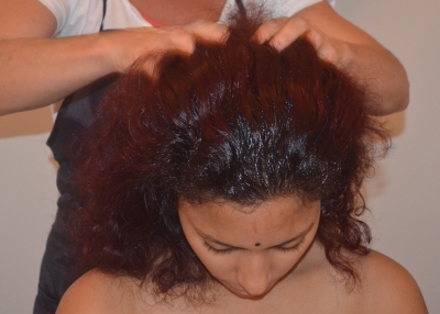 La séance commence par un massage de la tête. Puis, la personne déshabillée est allongée sur une table de massage .